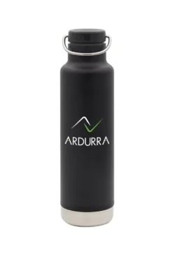 The Klean Kanteen Eco Insulated Classic 20oz with Loop Cap is built for performance and sustainability, crafted from 90% post-consumer recycled 18/8 food-grade stainless steel. Its Climate Lock™ double-wall vacuum insulation keeps drinks hot for up to 24 hours and iced for an incredible 63 hours, while the wide-mouth opening makes filling, pouring, and adding ice effortless. A loop cap with swivel handle ensures easy carrying, and the slim design fits most standard cup holders. BPA-free and finished with a chip-resistant Klean Coat™ powder coat and electropolished interior that won’t retain or impart flavors, this bottle is durable, stylish, and eco-friendly. Completed with a Digital Inkjet Ardurra logo, it’s a smart choice for everyday hydration.