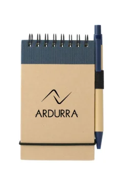 Stay organized on the go with 5 x 3 Inch Jotter with Pen, a compact notebook designed for quick notes and everyday ideas. Made with a recycled cover and FSC Mix paper, it offers a more responsible choice without sacrificing function. It includes a matching ballpoint pen with a recycled barrel, along with a band closure and built in pen loop to keep everything together. Lightweight and easy to carry, this jotter is perfect for meetings, events, or daily use, while also supporting environmental causes through a give back partnership.