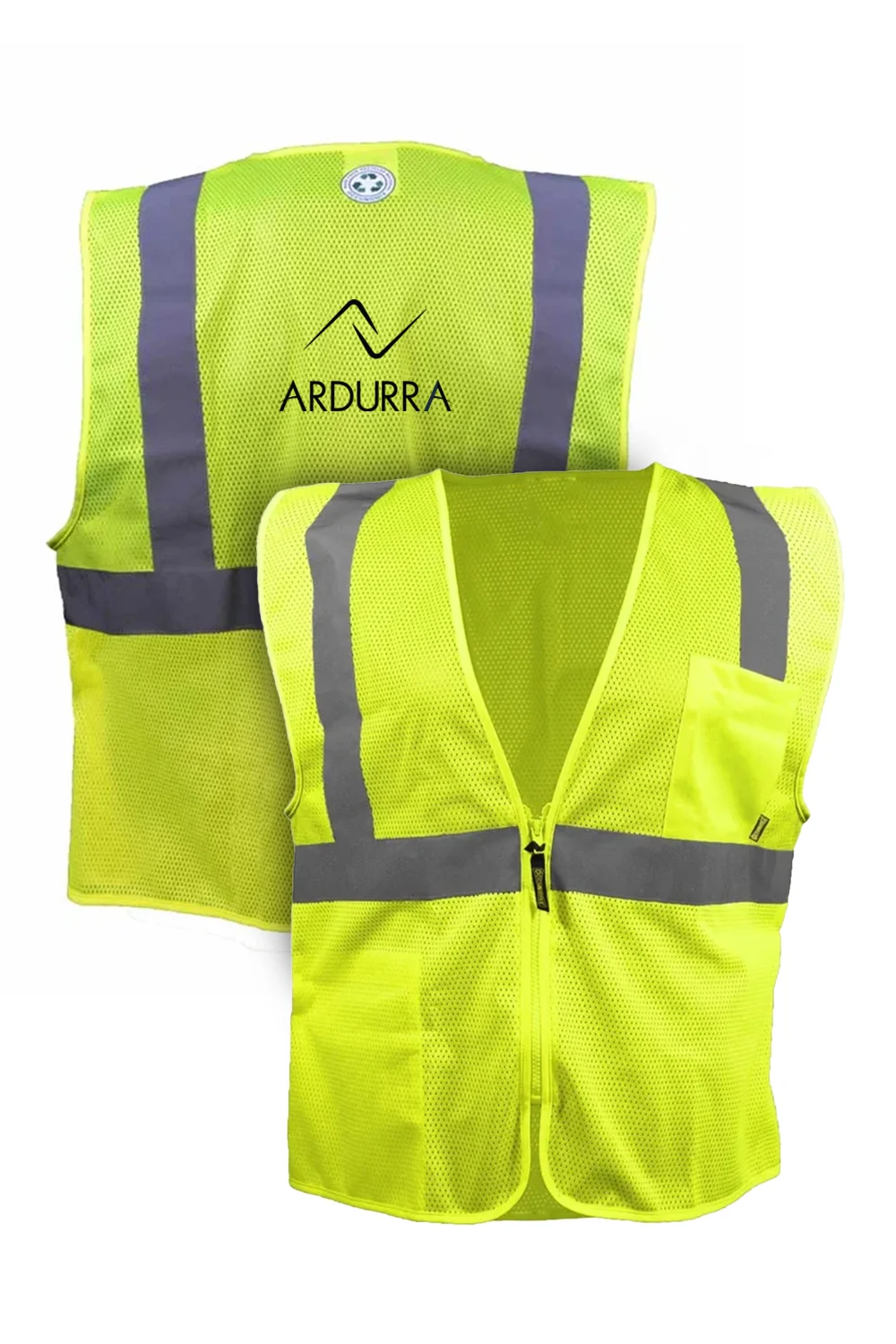The Sustainable Mesh Vest with Zipper delivers lightweight comfort, safety, and sustainability in one. Made from 100% post-consumer recycled polyester mesh with recycled thread, it meets ANSI/ISEA 107-2020 Type R Class 2 standards for high-visibility performance. Designed with 2″ reflective tape and a durable zipper closure, it also features two convenient pockets—a left chest pocket and an inner lower pocket—for essential storage. A practical and eco-conscious choice for work environments that demand visibility and responsibility.