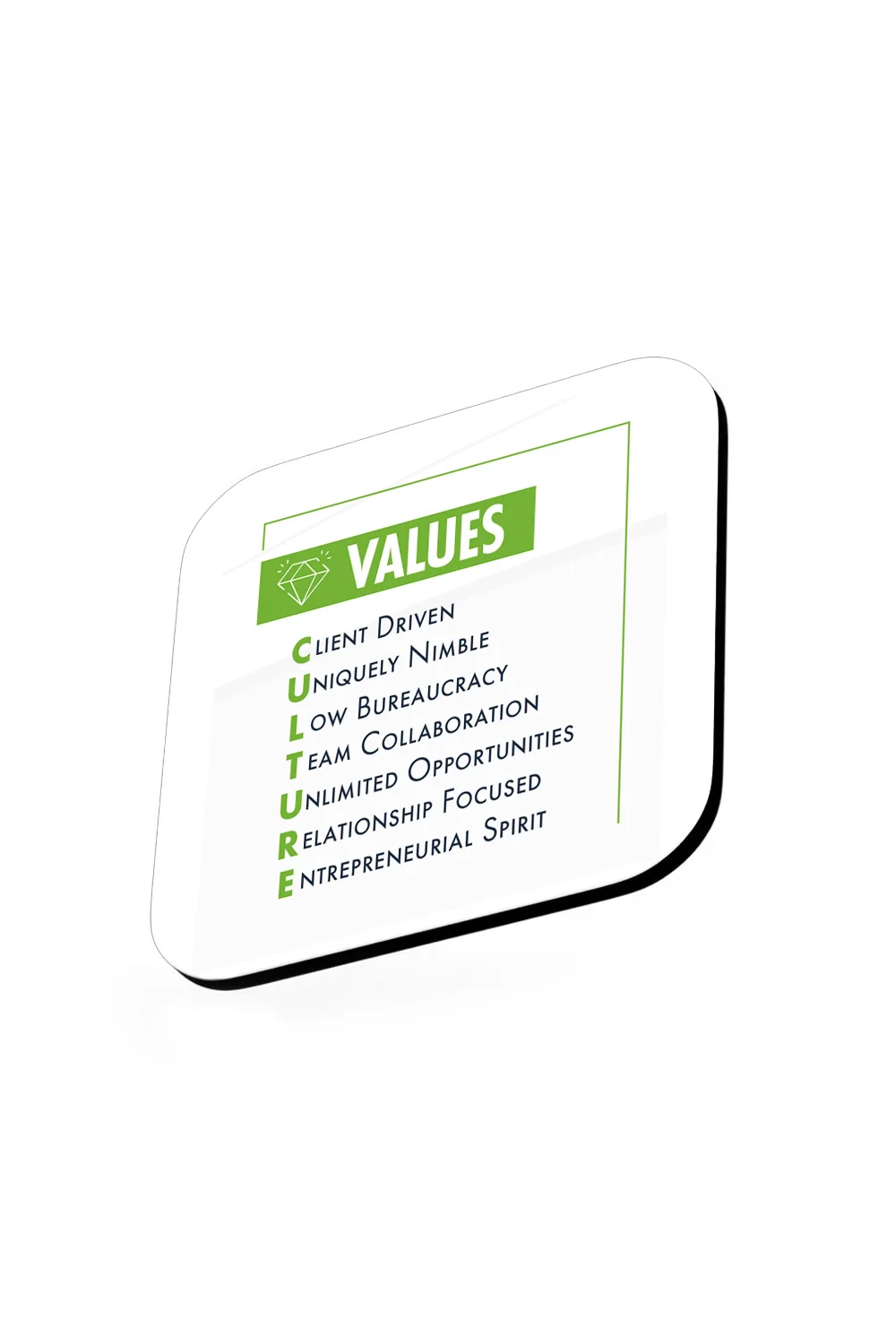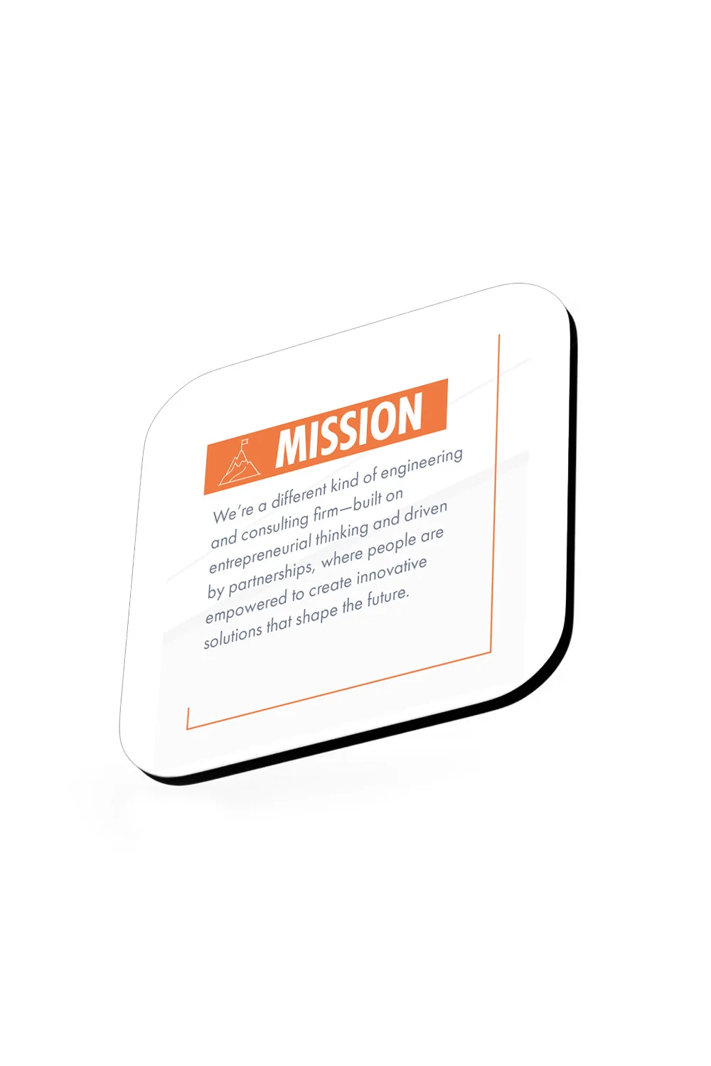 Designed with soft rounded corners for a refined look and cork bottoms to help prevent sliding, they combine functionality with a polished presentation. A practical tabletop essential that protects surfaces while showcasing bold, high-quality graphics.